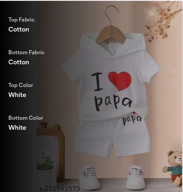 I LOVE PAPA WHITE KIDS CLOTHING SET PACK OF 1....I LOVE PAPA WHITE KIDS CLOTHING SET PACK OF 1 Name: I LOVE PAPA WHITE KIDS CLOTHING SET PACK OF 1 Top Fabric: CottonBottom Fabric: CottonSleeve Length: Short SleevesTop Pattern: PrintedBottom Pattern: SolidNet Quantity (N): SingleAdd-Ons: No Add OnsSizes:6-9 Months, 6-12 Months, 9-12 Months, 12-18 Months, 18-24 Months, 0-1 Years, 1-2